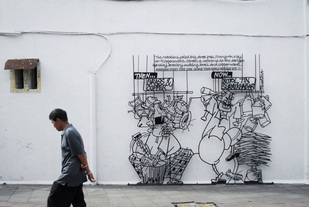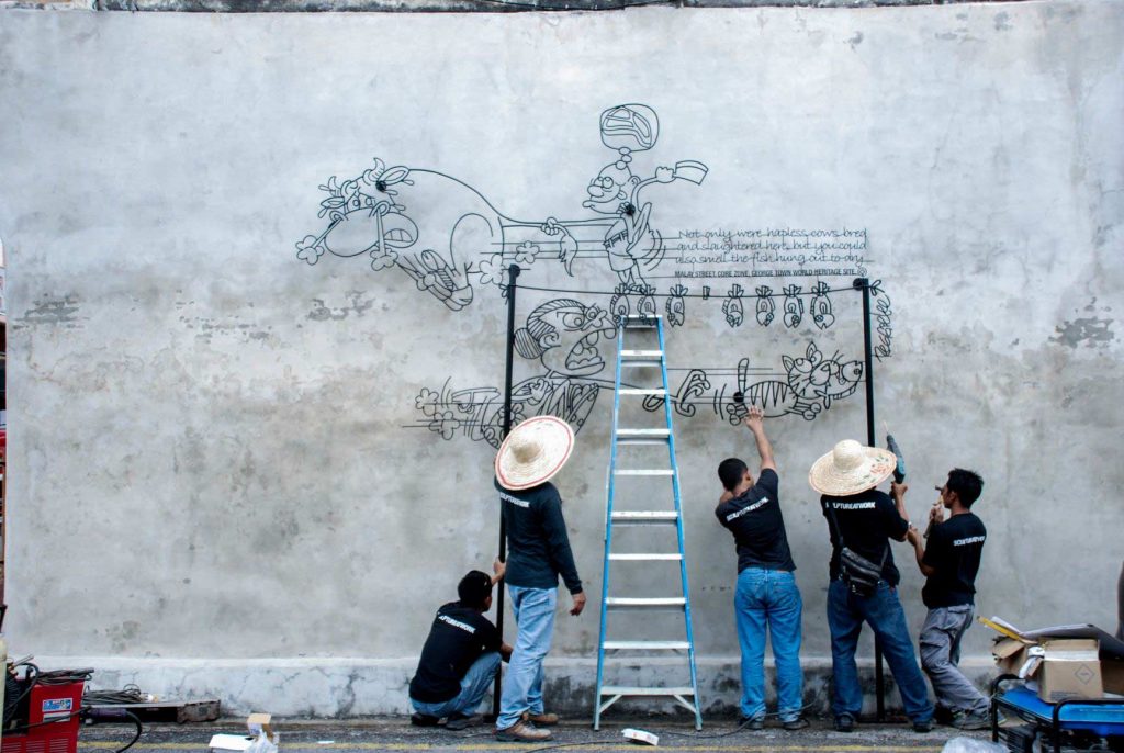 In September 2009, our creative director, Mr. Tang Mun Kian won the Marking George Town competition that were organized by the Penang State Government with the concept “voices from the people”. The concept was in parallel to the history or characteristics of selected streets in George Town by using elements of storytelling and steel rod caricatures to capture the heart and attention of the visitors and residents of George Town. There are a total of 52 sets of sculpture reflecting the unique character of each location through amusing caricatures.